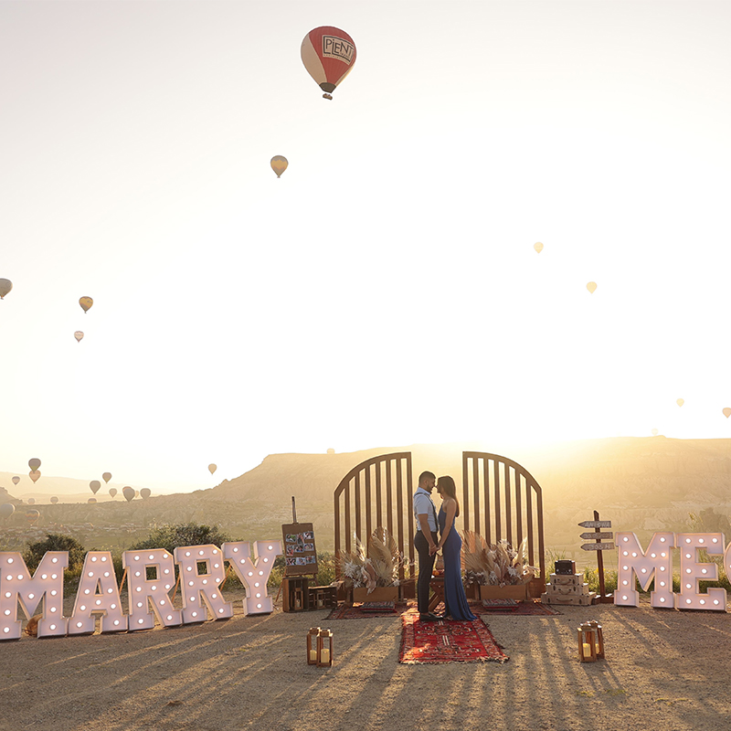 Cappadocia is unlike anywhere else — with its otherworldly landscapes, fairy chimneys, and skies filled with colourful hot air balloons, it’s a truly magical place to propose. Whether you choose a sunrise moment overlooking the valleys or a private setup among the unique rock formations, Cappadocia promises a breathtaking and unforgettable setting for your ‘yes’ moment.