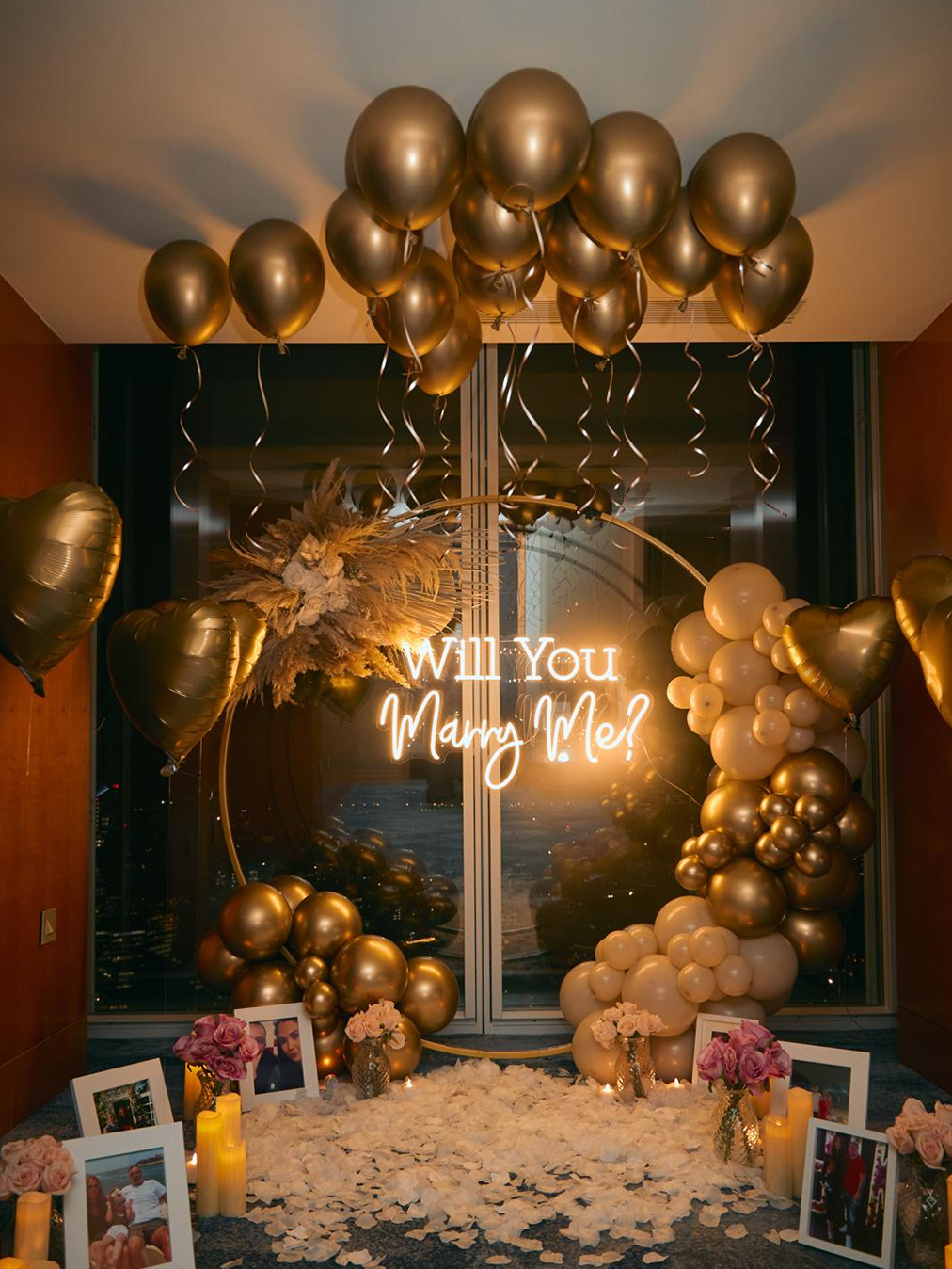 For a private and intimate proposal, a luxurious bedroom or suite is the perfect choice. Enjoy breathtaking views and extend the celebration with an overnight stay. For a surprise element, we’ll decorate while you dine or explore the city, creating a magical setup for your special moment.